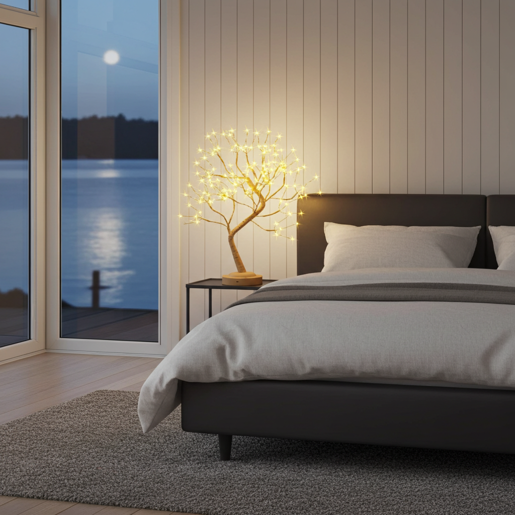 Denna dekorativa bonsai-trädlampa kombinerar modern design med varma och stämningsfulla ljus, perfekt för att skapa en mysig och inbjudande känsla i vilket rum som helst. Med flexibla grenar kan du justera och forma trädet efter egen smak, vilket gör det både unikt och personligt.