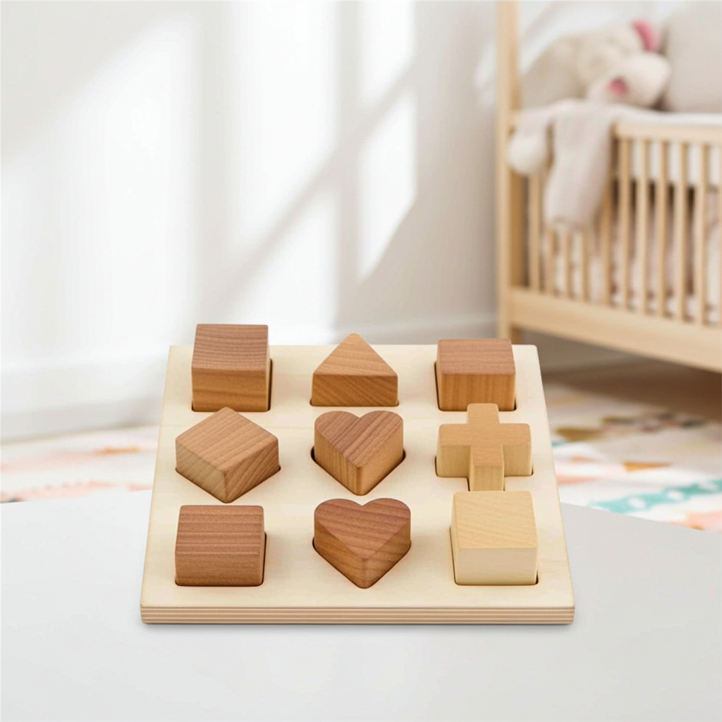 Sorteringsblock i trä från Wooden Story är en pedagogisk leksak som utvecklar ett barns manuella färdigheter, hand-öga-koordination och logiska tänkande. Setet består av 9 block i olika former, som småbarnet kan matcha till lämpliga hål på träbrädan. Leksaken introducerar inte bara barnet till formernas värld, utan stimulerar också deras koncentration och observationsförmåga.