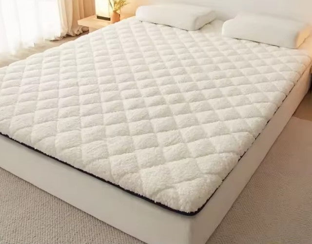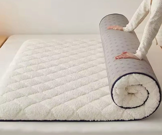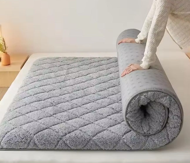 Bekväm bäddmadrass med en yta av fleece och snyggt mönster. Fyllning av polyesterfiber gör att madrassen andas och håller dig sval på sommaren.
