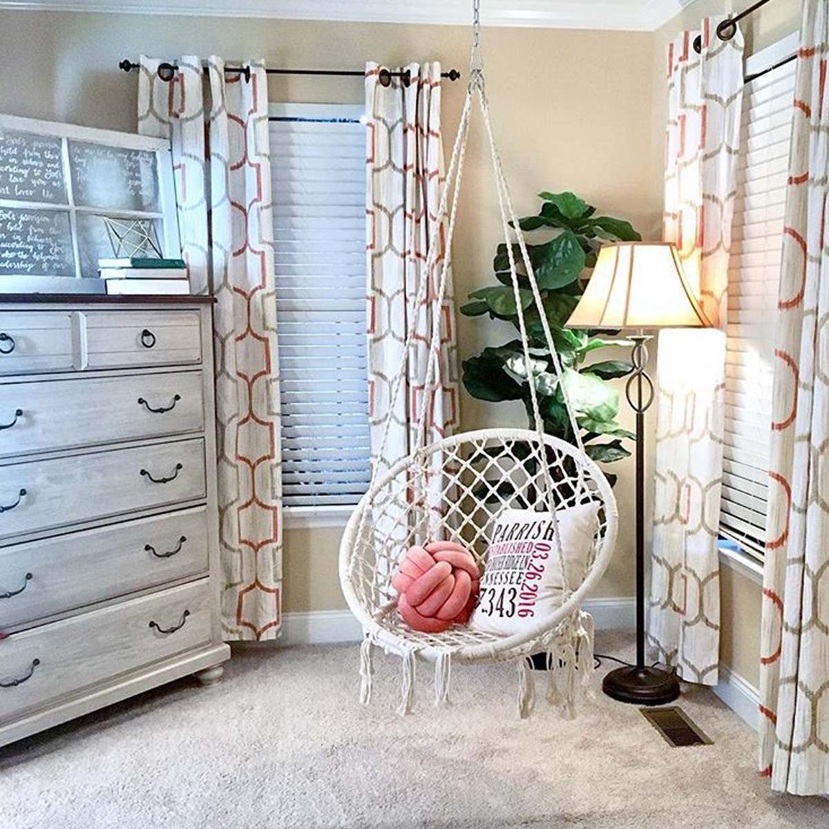 En handknuten hänggunga med maxvikt 150kg kommer att pryda hörnet i ditt sovrum med stil. Lägg i ett par fina kuddar och mys med ditt barn.