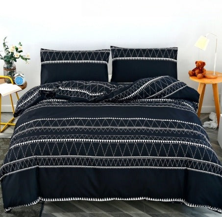 Ge sovrummet en ny och levande känsla med detta 3-delade bäddset i högkvalitativ polyester. Setet innehåller ett mjukt påslakan och två örngott, designade för att ge komfort och stil. Det dubbelsidigt borstade materialet är lent mot huden, färgbeständigt och skrynkelfritt – perfekt för vardagsbruk. Det geometriska trycket ger ett modernt uttryck som lyfter hela sovrummet.