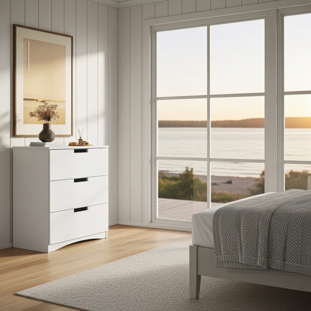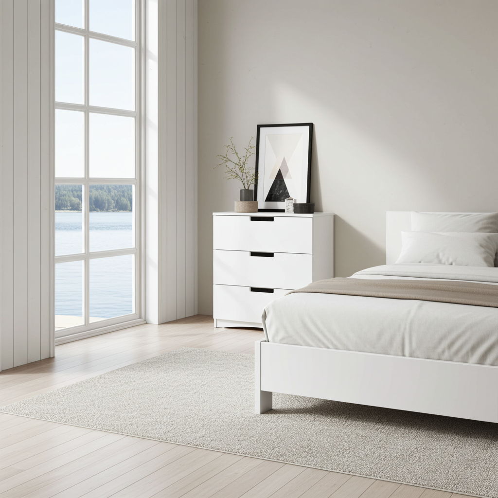 En ren, tidlös design som passar perfekt in i alla sovrum. Den klassiska byrån erbjuder vardagsfunktionalitet utan att kompromissa med utseendet. Byggd av hållbara material och designad för att hålla länge.