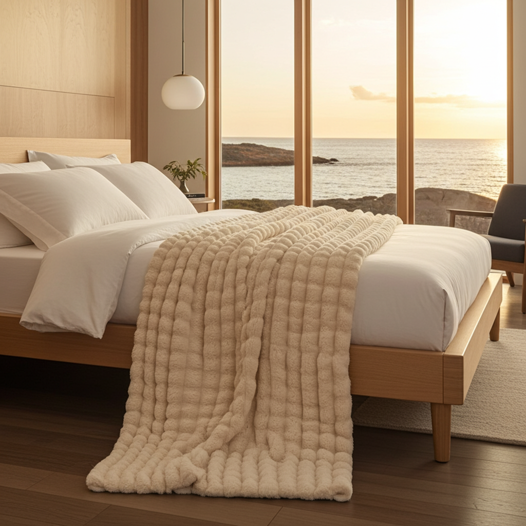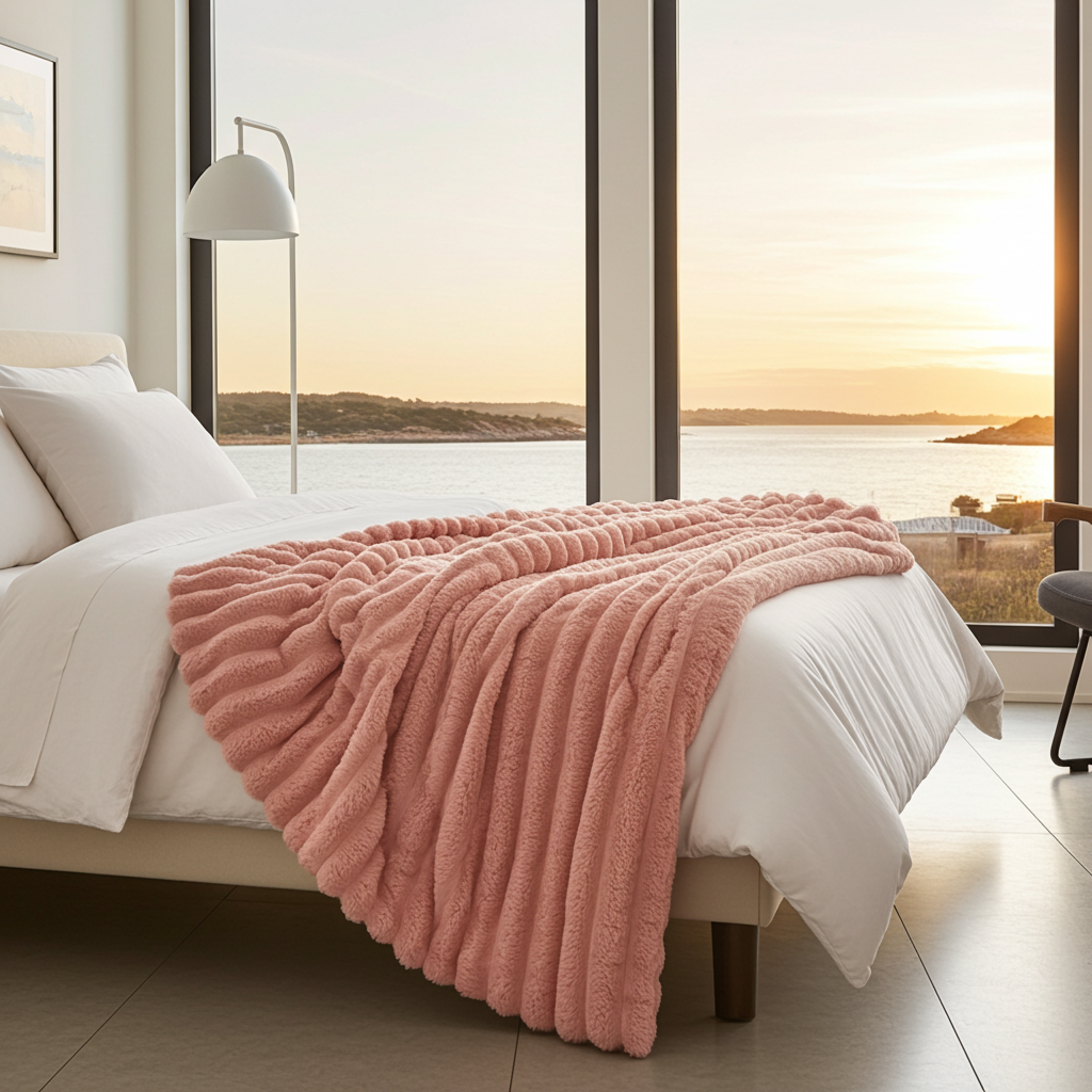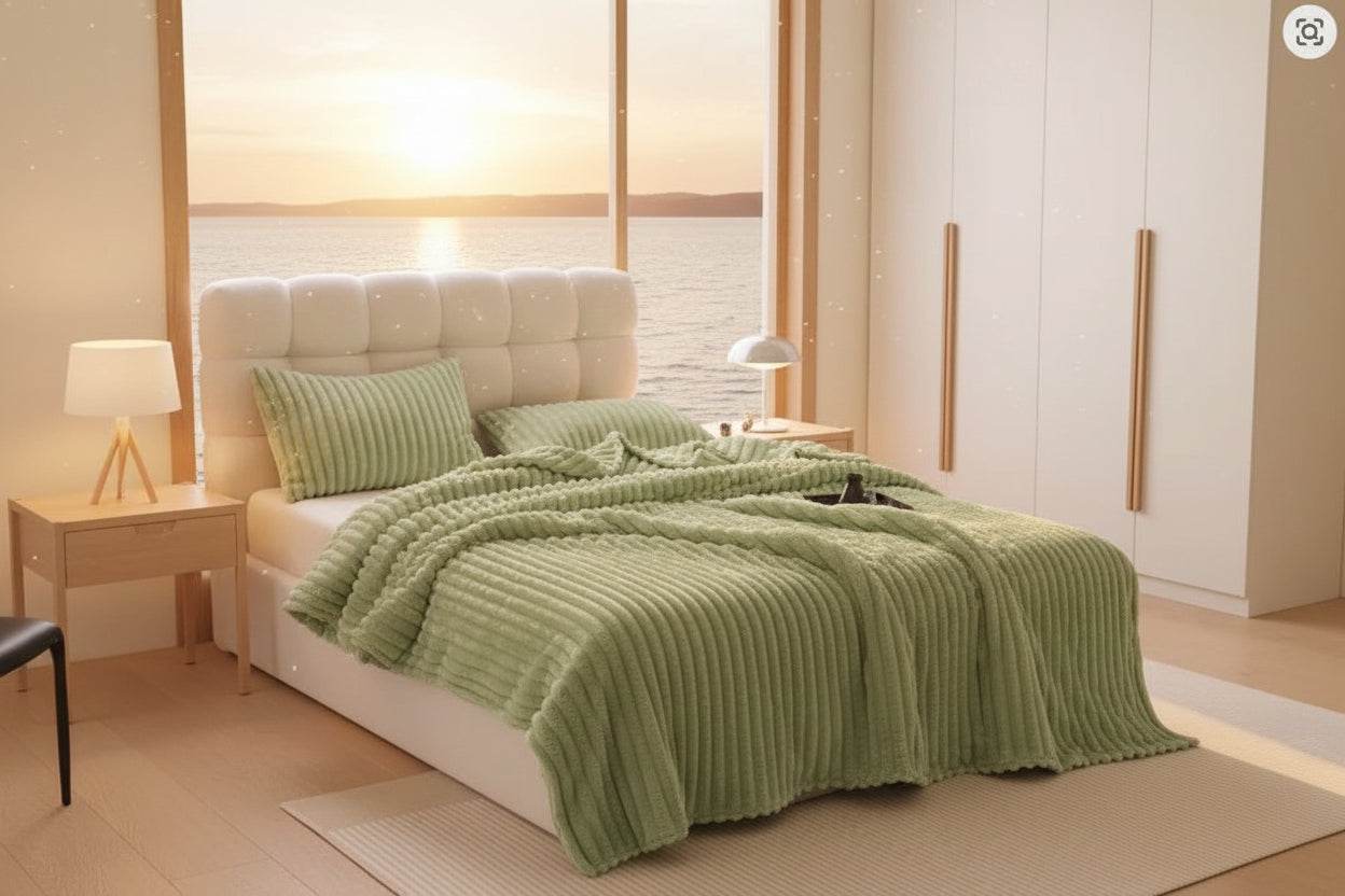 Mysigt överkast i mjuka pastellfärger ger ditt sovrum en skön avslappnad känsla. Fleecematerialet känns tjockare än vanliga bomullsöverkast men väger inte lika mycket.