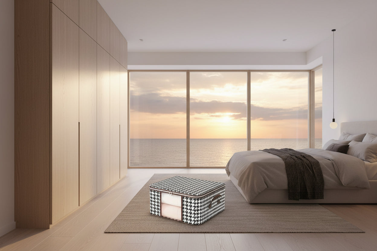 Förvaringspåsen är tillverkad av non-woven-tyg, vilket är mjukt och andningsbart. Liten i storlek och vikbar, lätt att bära. Förvara kläder, filtar, kuddar etc. Stilren förvaring som håller damm och smuts borta från dina textilier.