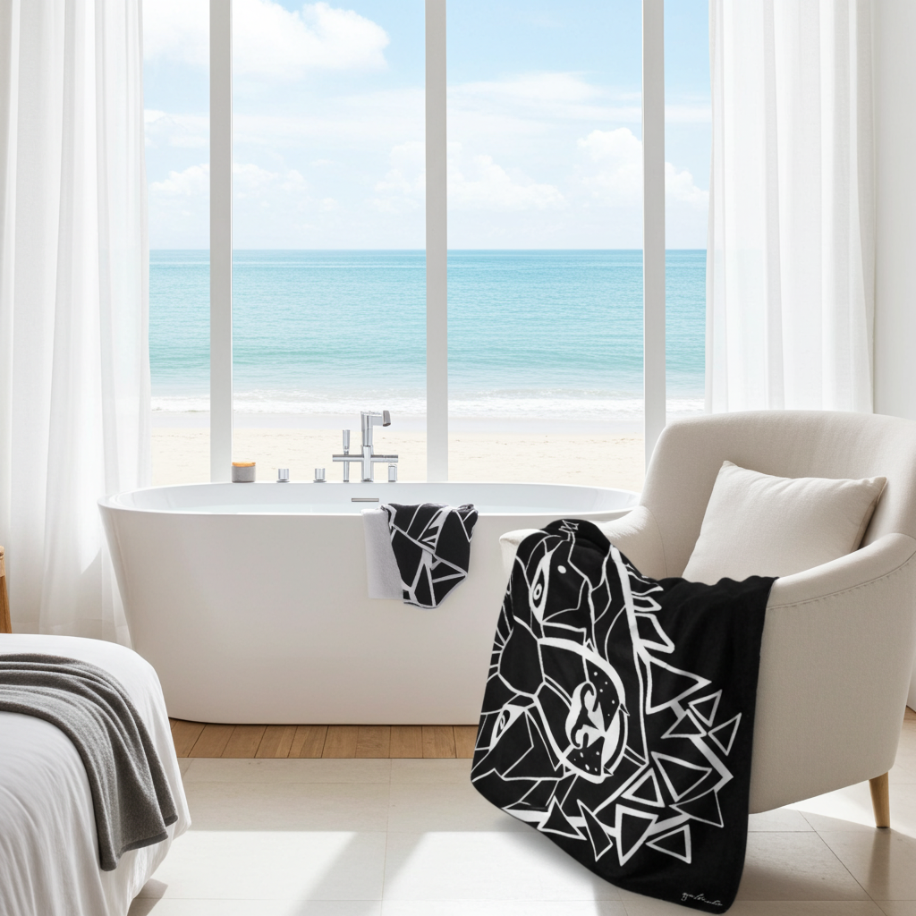 Tillverkad i Litauen. Målningen på handduken är handritad av Garbanota.