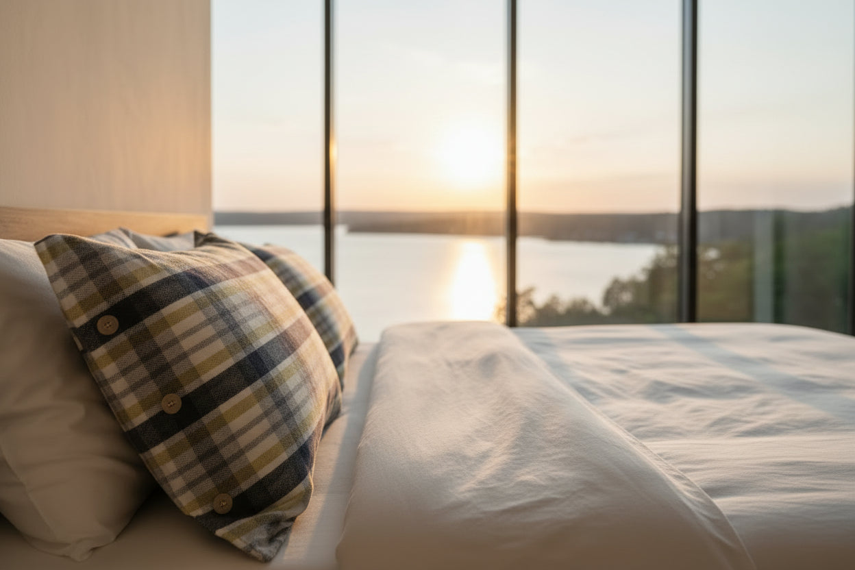 Uppgradera kuddkänslan med två lyxigt mjuka örngott i kammad bomull. Tyget (400 TC) har en chambray-liknande melangeeffekt som ger ett avslappnat, men ändå stilrent uttryck. Sidans dekorativa träknappar fungerar både som fin detalj och praktisk kuvertstängning – inga glidande kuddar, bara ren sovkomfort.