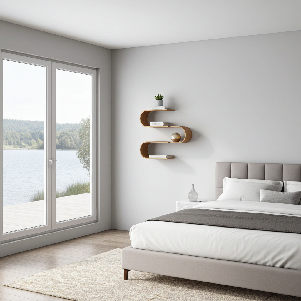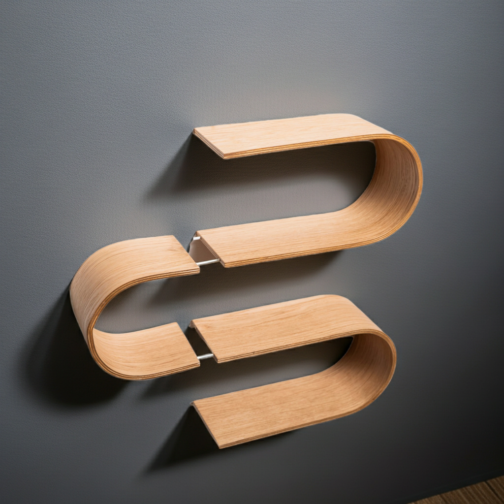 Denna handgjorda trämöbel är designad för både stil och praktikalitet, denna S-formade svävande hylla i baltisk björkplywood är den perfekta blandningen av hantverk och modern design, vilket gör den till ett framstående tillägg i alla rum.