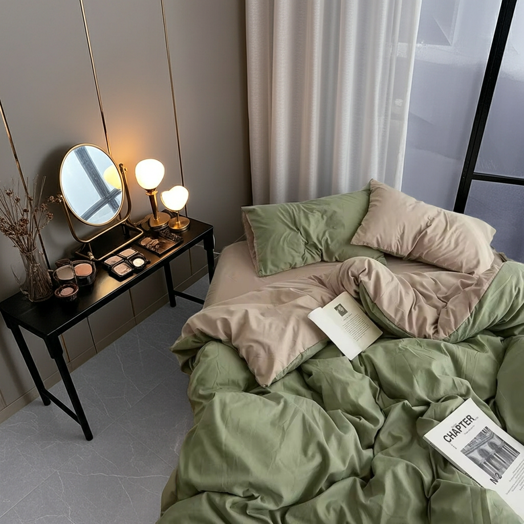 ZENTO Bäddset 4 delar Grön & Beige